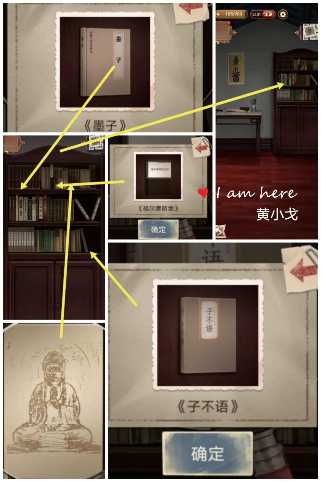 6.书柜(从上到下):【福尔摩斯探案集】→闲暇喜好、【一张佛像】、【墨子】、【天工开物】、【麻姑仙坛记】、【多宝塔】→书乃心画、【芥子园画谱】、【半农谈影】、【子不语】