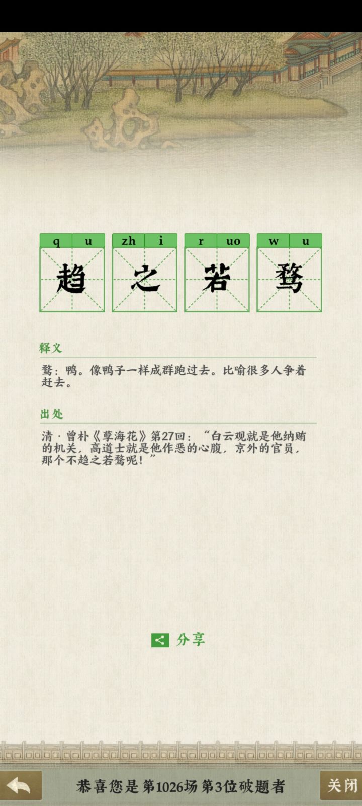 趋之若鹜的鹜正确写法是鸟字底,成语释义里明明是对的,为什么猜的时候是下面是马的骛