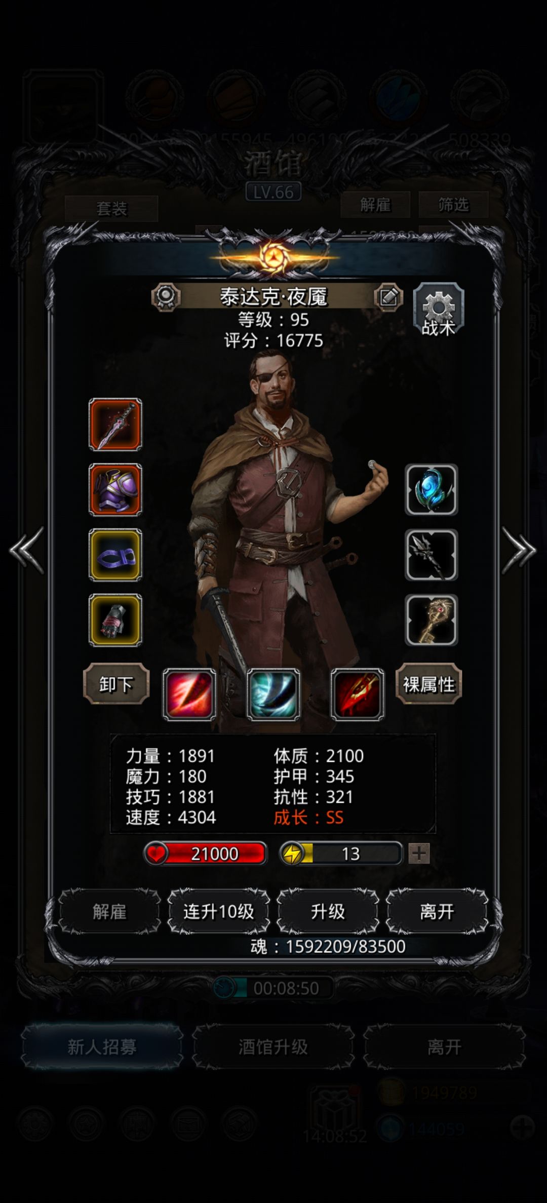 早起刷脸7-8次过恶魔大君,花费150钻石买精力