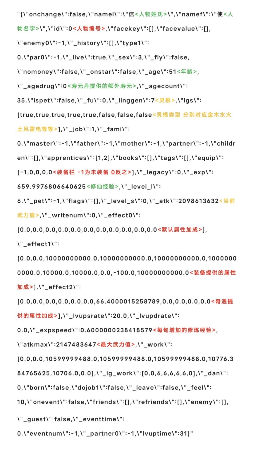 绿色为可修改 黄色为可能会导致存档崩溃的修改