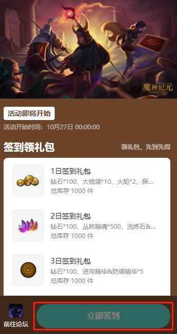 1.等待活动开始后,在TapTap《魔神纪元》论坛中点击下方“签到活动”即可进入签到页面