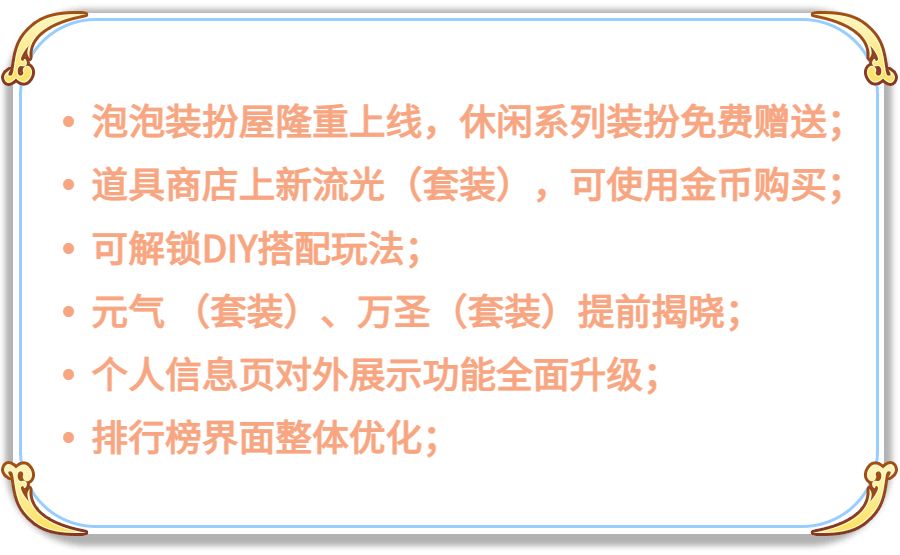 为即将上线的万圣狂欢夜悄悄预热一波,听说蟹老板在万圣活动中放置了一套万圣绮梦(套装)等馆长收集,期待新泡泡服饰和新活动早日和馆长们见面啦!