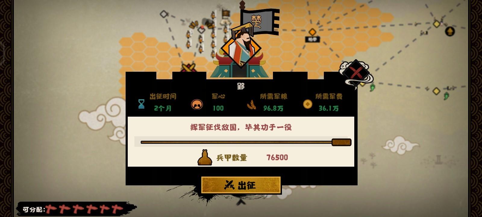 向楚臣服(一格就行,礼团进城前可以先存档一下防止失败)