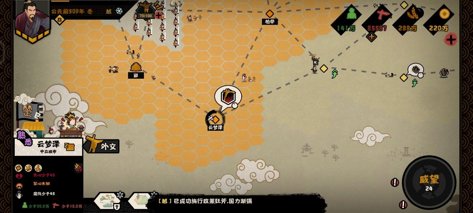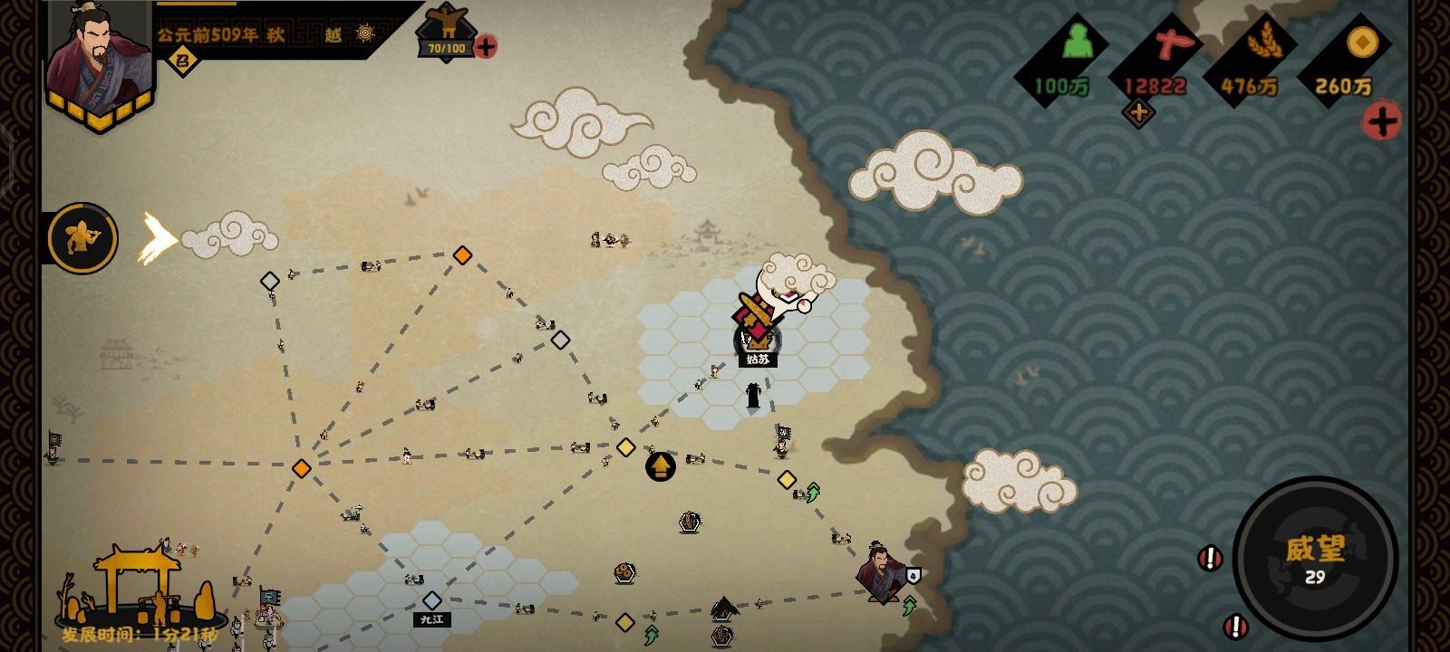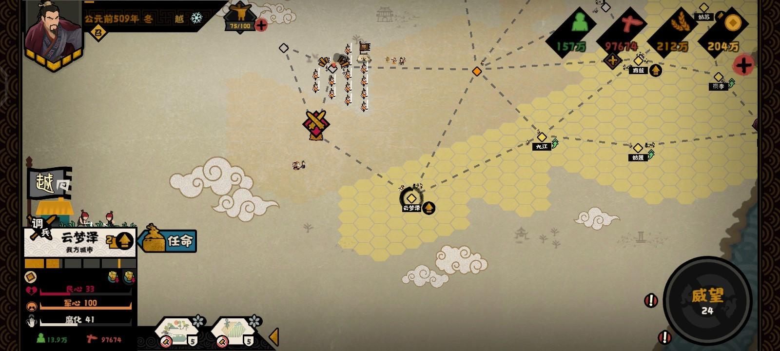 灭掉吴国后咱们直接进攻楚的云梦泽(一个二级城市,20耐久度,两次进攻下来)