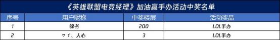3. 我们将从所有正确参与的玩家中抽取2位用户每人获得LOL手办*1,奖品不可重复获得;