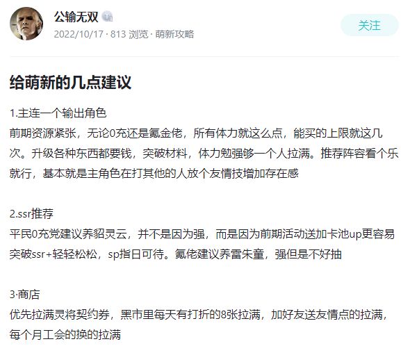 各位小伙伴们大家好呀,10月23日我们的共战测试也已经结束了,自从上次的攻略征集活动合辑01发布后,还有很多小伙伴投稿了攻略,让我们看看有哪些精彩的攻略: