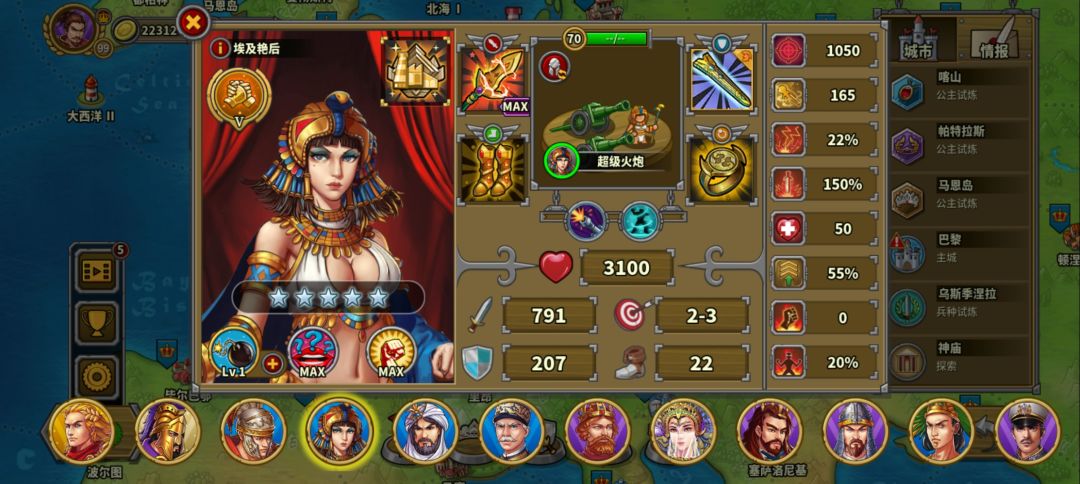 总结就是没有凯撒和苏莱曼,本关就对运气有很大要求,命中必要要堆高,出一次miss就可能过不了,全关攻略简单来说就是保艳后,艳后是这关的核心输出。