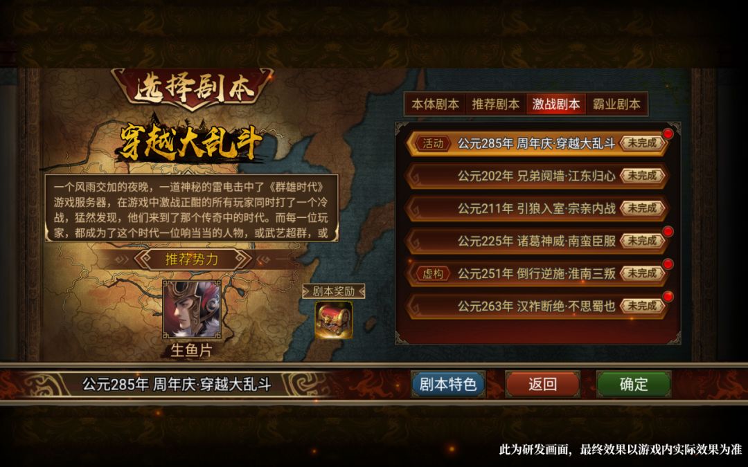 4.“穿越大乱斗”剧本为限时开放,剧本结束后,将关闭剧本入口及存档。