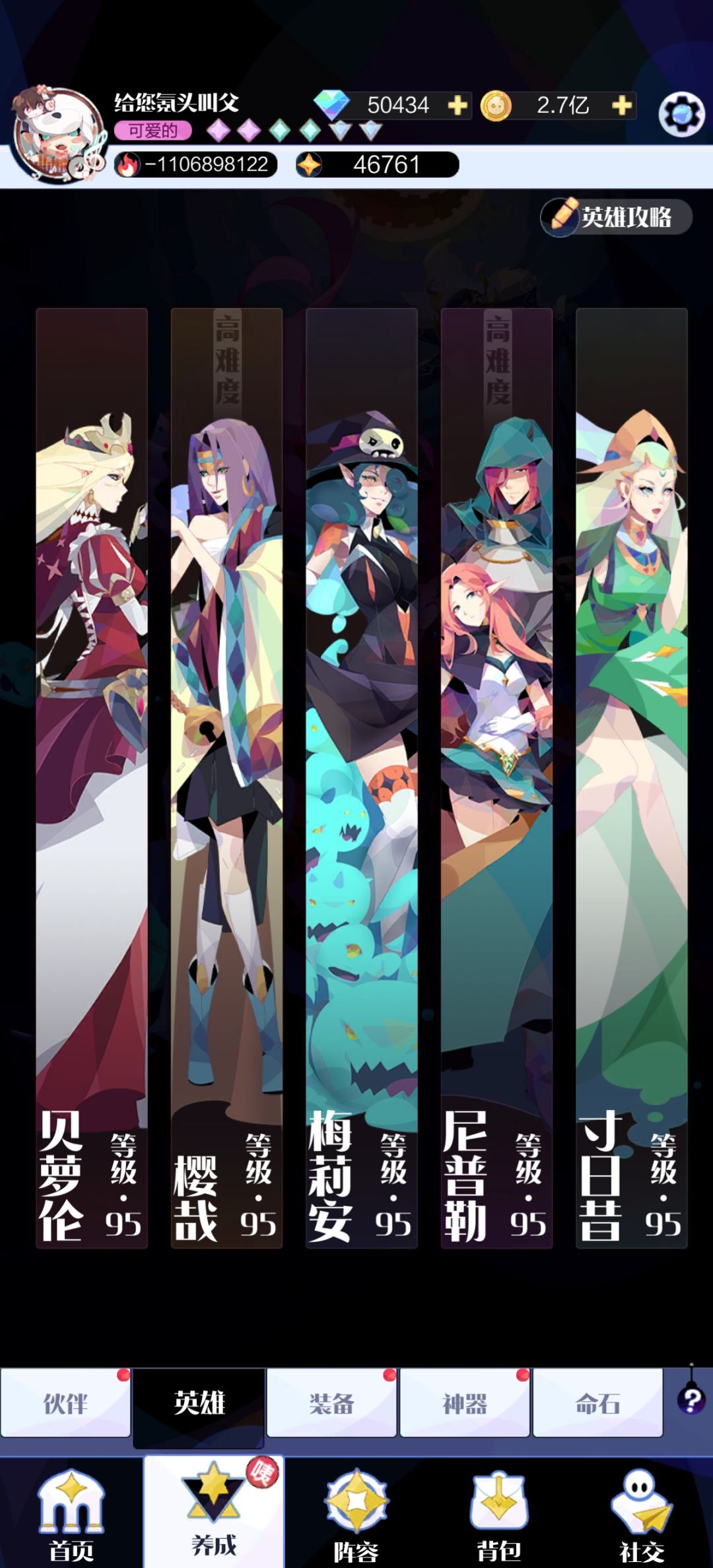 【英雄等级设定】初始等级1,满级等级21。通过消除获得形态值以及在对战中消灭的敌方伙伴形态值获得经验。每升一级获得1~2点被动技能点,以及1点主动技能点。