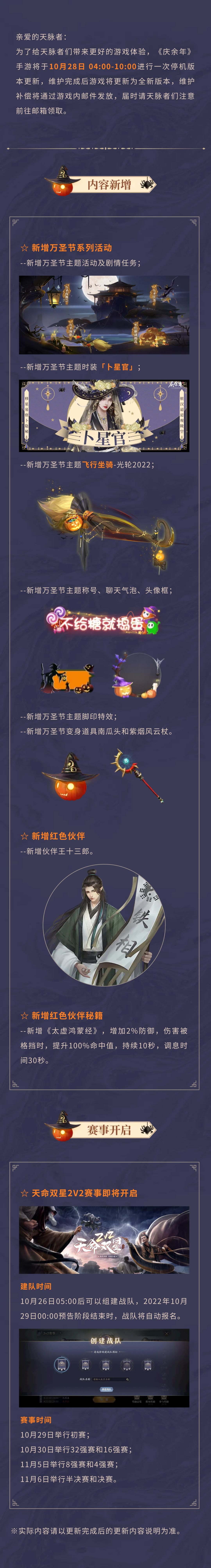 各位天脉者好~10月28日更新公告奉上,请查收~