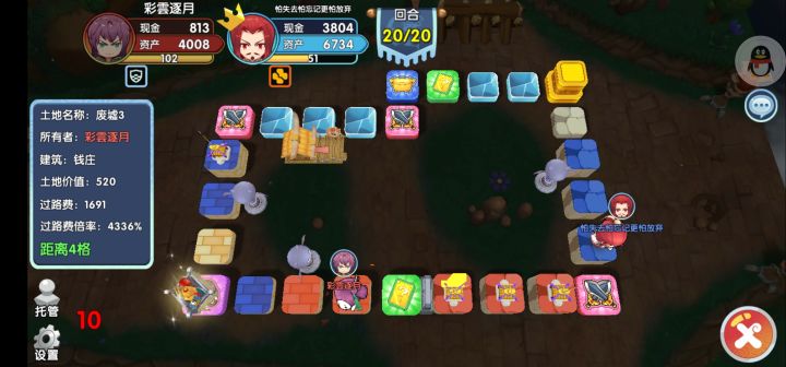①我手里有二进,还有个神速,你说能赢吗。我肯定会踩对面钱庄的,然后利用被动升级自己的钱庄。主要我也是计算了一会,所以截图时已经没法找最开始场面了。如果对面二进那没建钱庄,那我就二进踩了赢。②我手里有二和五。根据连锁资产公式,最后资产图在Q群发过,就不发这里了。一个38,一个83。皇后是踩强盗窝交了53过路费。不然我应该还是输😂。那个现金应该是六百吧,要是我没记错的话。③反正不知道打的这是那块地也不知道对手想不想不计代价打赢。反正我专武暴击53,对面没暴击😂😂😂。简单算法是61+53>79+32。第八张图特别像,但我专武没暴击。④如果你踩到天命格,落脚点在哪里?第一个黑洞那儿。⑤如果走到俩洞中间,会被哪个洞吸走。离起点近的,从正向数。⑥和五一样,会被左边那个洞吸走⑦巧了,我手里刚好有个五,傻子才不走五呢!这局李儒其实运气很好的,非常恶心人,但是她失误多了点。而且我打李儒还是有着那么两次经验。决斗以及送死时机太完美了。开局五回合直接把我五块地都烧了,我还是有着一点崩溃的。我俩打了十几局,还是我输多,运气完全不成正比😅😅。