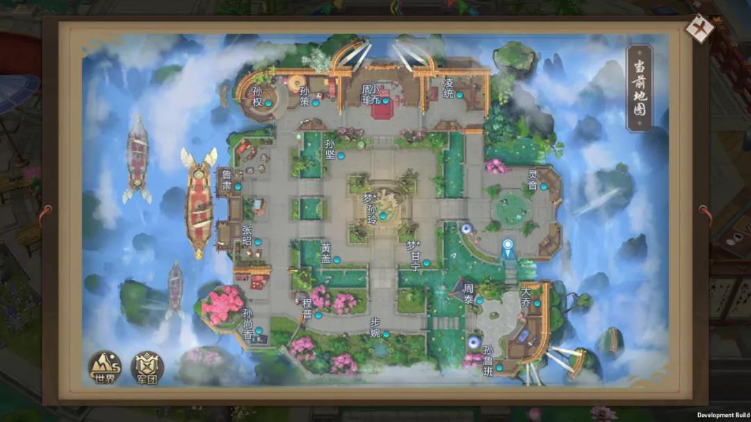 大家即刻便可以通过世界地图进入东吴神族的主城,在这里,大家能见到神仙眷侣周瑜和小乔在这里秀恩爱。