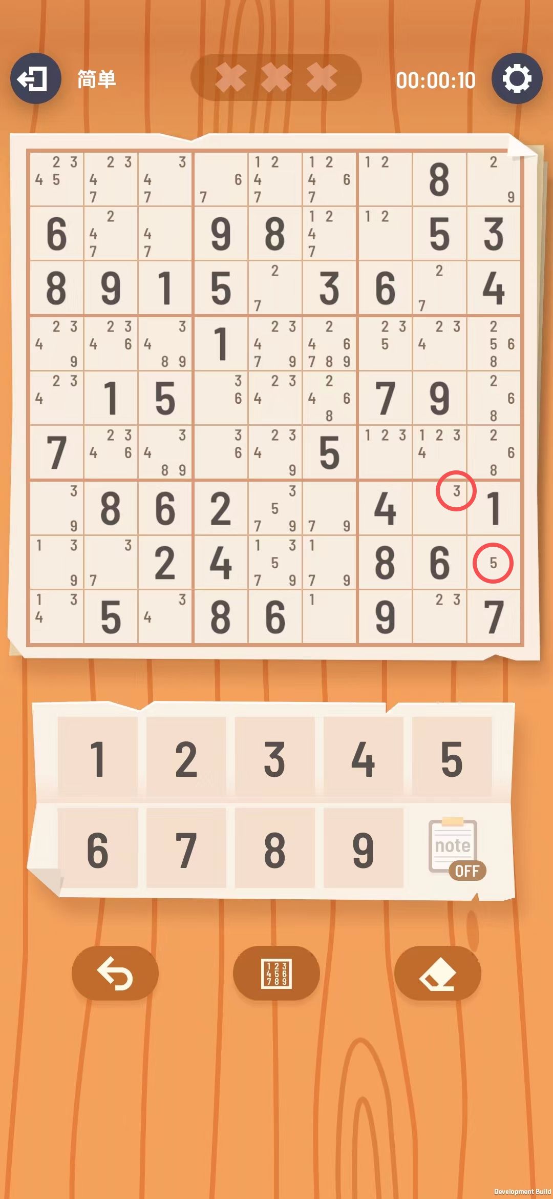 这两个单元格中的3和5都孤零零的存在着,所以它们作为裸奔单一数就是这个单元格的正确答案。填上去就对了~~~!
