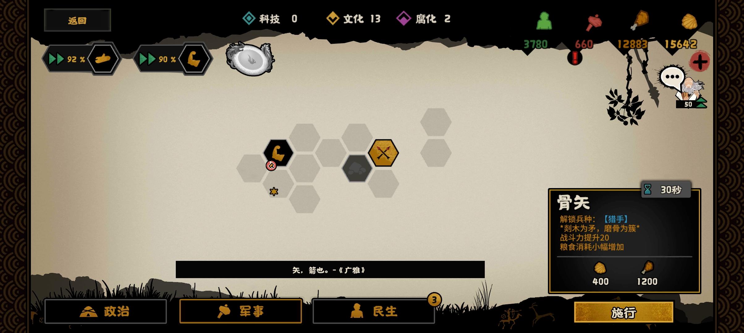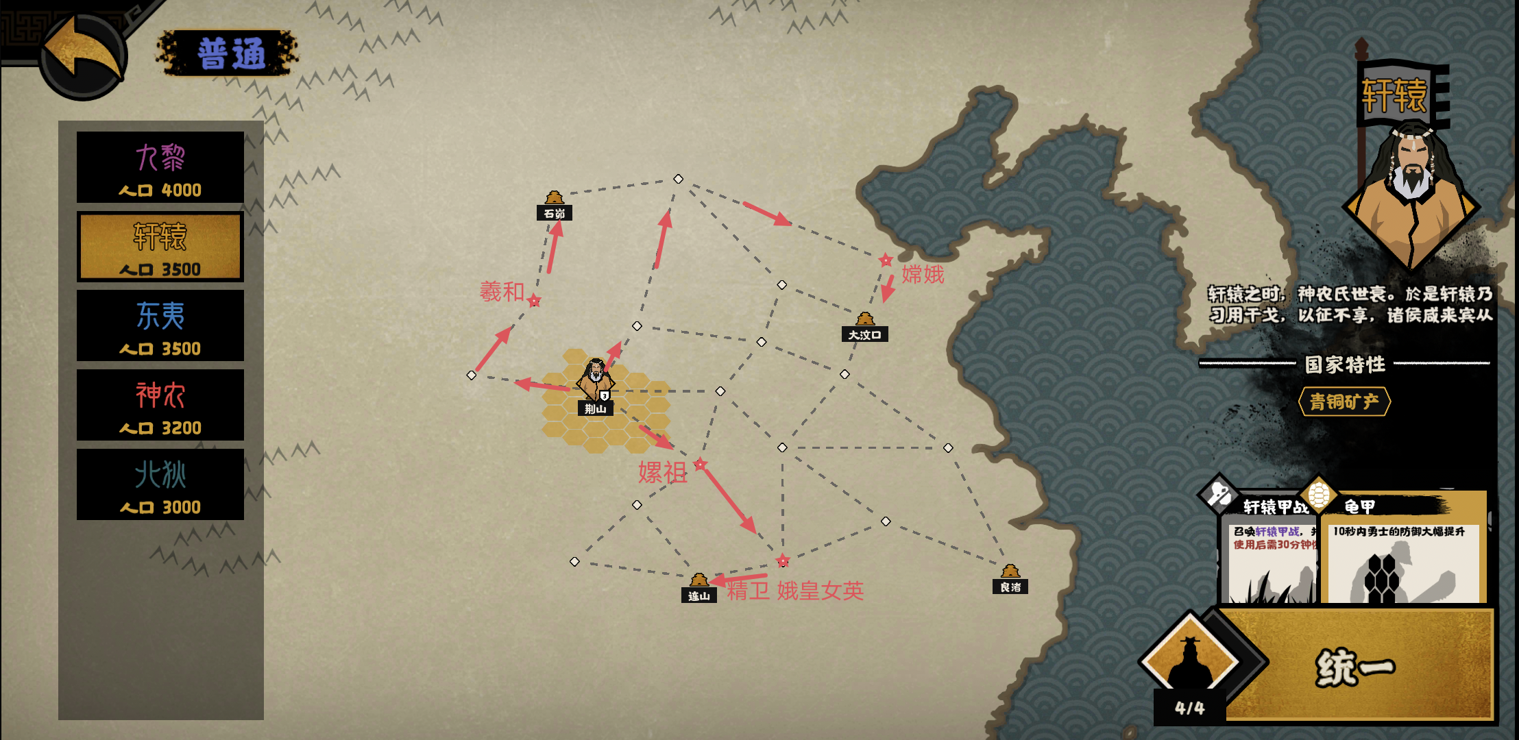 出兵线路直接走离三个国家最近的路。招兵,开加速打。期间政策建筑选加攻击的,军队规模的(两个兵种+40攻),打完选钱粮也可选野兽(解锁兵种+20攻)