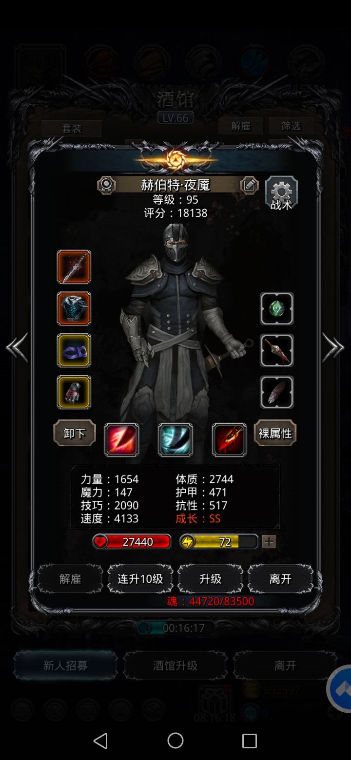 我的夜宴无抗性buff被boss攻击伤害为1.7w 所以需要带双吸血,魔石战利品最好有命中属性。这样夜宴一直在输出,而且夜宴自带40暴击不怕boss减技巧。