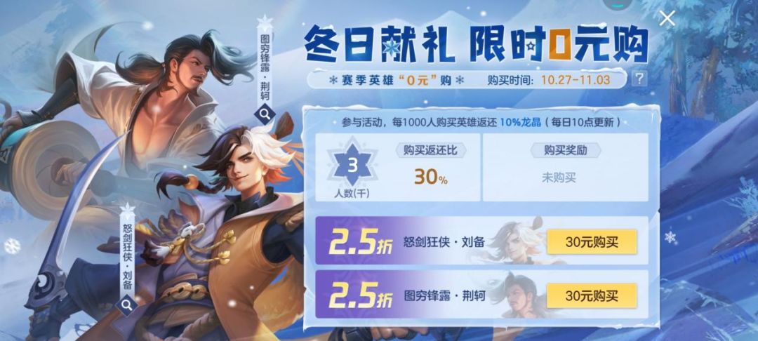 (2)在本活动中花费30元购买任意英雄后,可获得龙晶奖励返还
