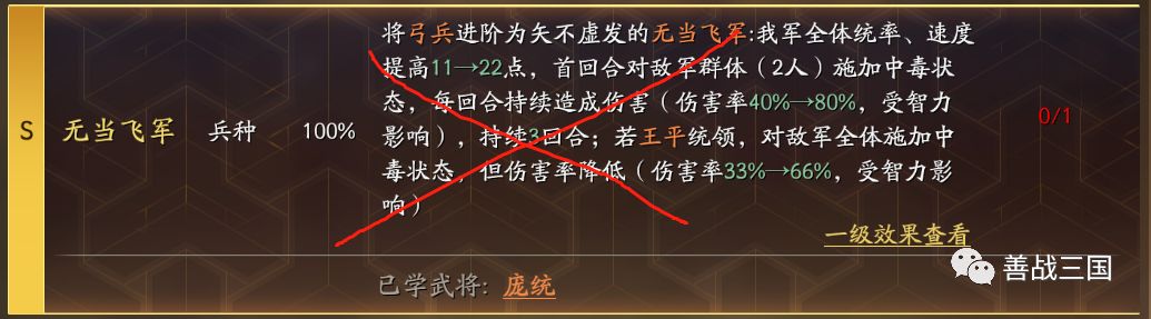 不过要注意有朱儁的群弓带【临机制胜】就不适合带无当飞军,因为朱儁和【临机制胜】都有叛逃,首回合刷出叛逃相当于浪费其中一次刷持续状态的机会