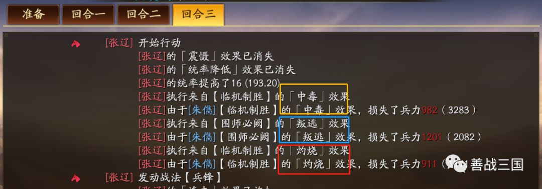 不带无当飞军的话,首回合先释放中毒,冷却,再次释放时毒和叛逃的效果都还存在