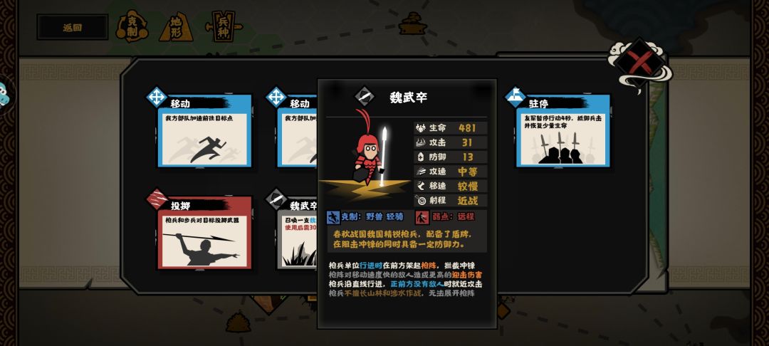 2:每个士兵必须要身披重甲*1、铁头盔*1、弩*1、箭矢*50、长戈*1、配剑*1、三天粮草,然后半日行军100里。