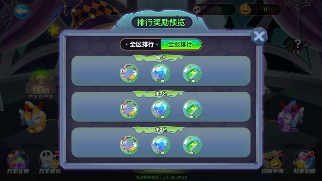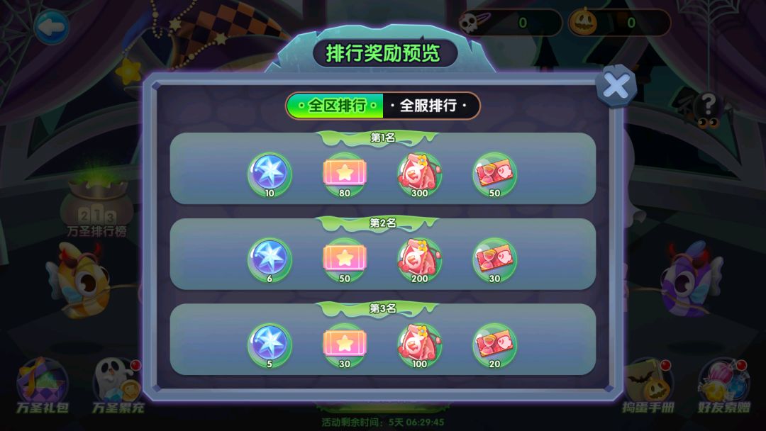 活动期间,收集三种糖果送给泡泡女巫炼制魔法药水,即可获得数量不等的捣蛋南瓜和小鬼发夹道具!每赠送一次糖果给泡泡女巫进行融化,则增加1点进度,达到指定进度即可领取丰厚奖励,终极奖励则为本次活动入场券,领到券的馆长可以参与排行榜比拼还能领取丰厚奖励~