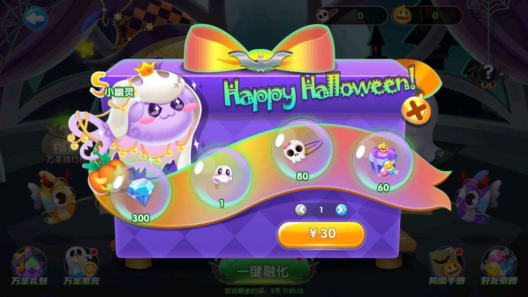 狂欢不尽兴,万圣礼包更有惊喜!新鱼、钻石、自选糖果道具都放在礼包里,超值礼包,狂欢过节~