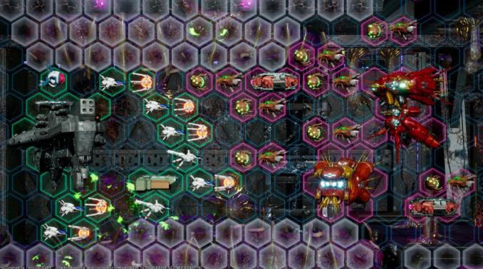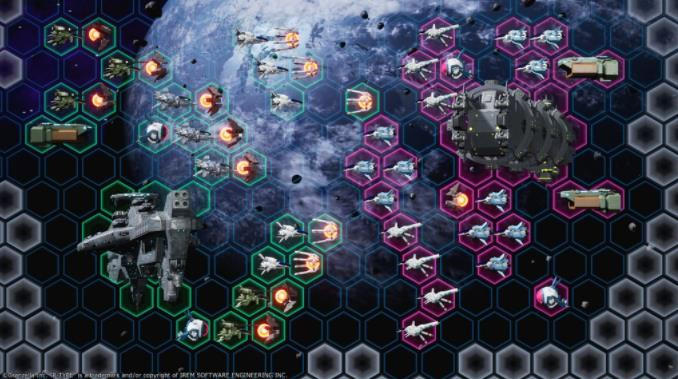 《R-TYPE TACTICS I・II COSMOS》游戏采用六角棋盘格回合制战略模拟的方式进行,玩家可操作战舰以及各式战机进行攻防。游戏舞台的设计类似先前的
