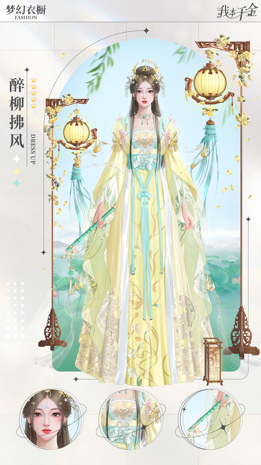 着杏黄罗裙握竹笛