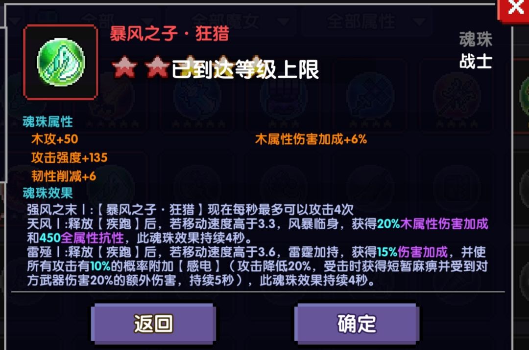 三星魂珠可以让攻击频率上限达到4,即400攻速,注意⚠️!攻击频率=攻速/100,攻击频率的上限只能到4但是攻速没有上限,依然可以增加(可以超过400但是收益降低)!而且因为五星武器的效果使得风战的伤害与攻速挂钩,所以要通过: