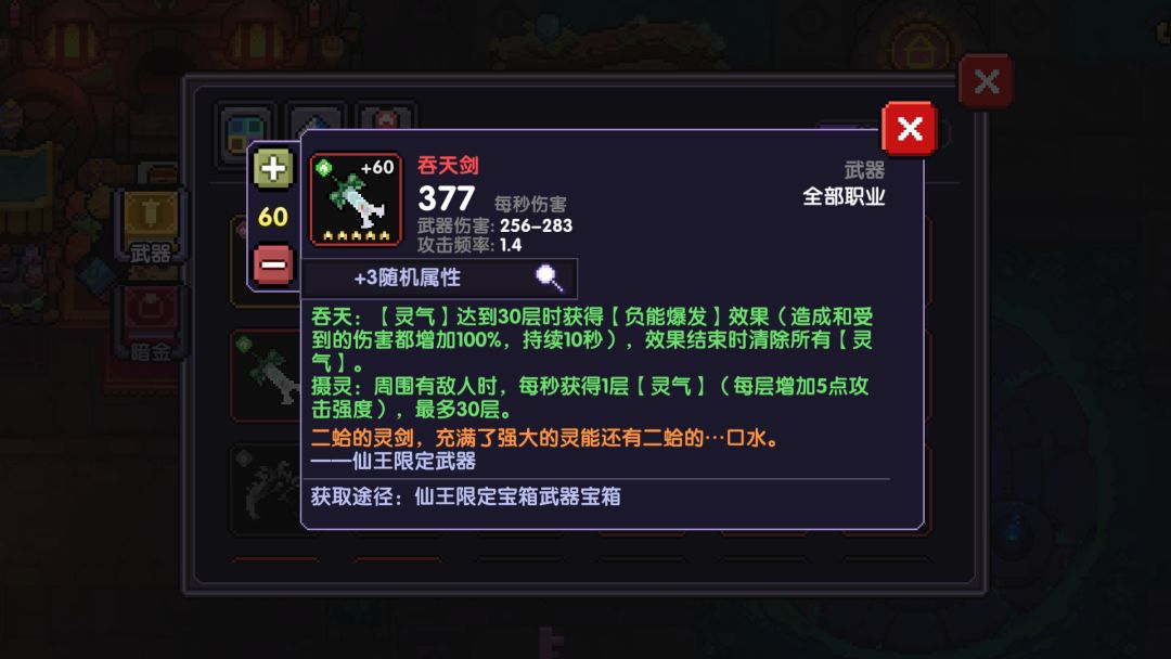 总结一下武器机制:1、吞天剑叠满摄灵以后在10秒内提升100%总伤