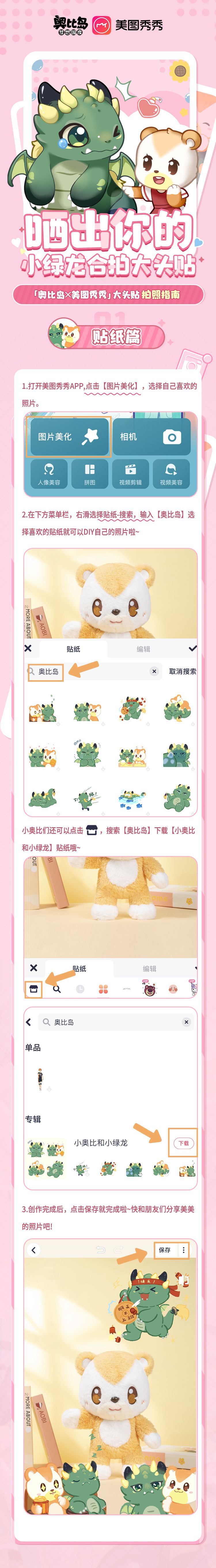 ⭐「奥比岛×美图秀秀」联名款大头贴惊喜上架!小奥比们在游戏内使用同款小绿龙大头贴,拍照记录在奥比岛的美美瞬间。