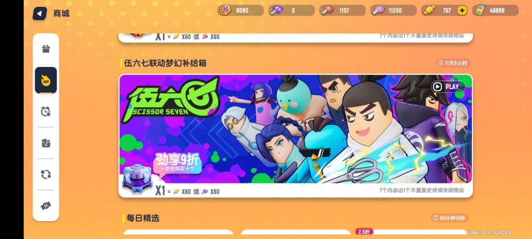 每天会有一个20糖果可以买到一个5折的五六七盒子开,10天下来200糖果就可以10连抽了