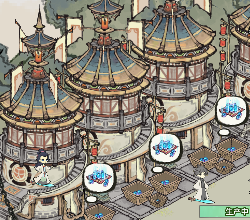 弟子工作地点要保持道路畅通,要不然弟子不会去工作,风水区可以和工作区分开,另外分出一块地全部放满风水建筑,不需要留空隙,更大限度的增加风水。(风水建筑就是那些景观、装饰和持有植物)