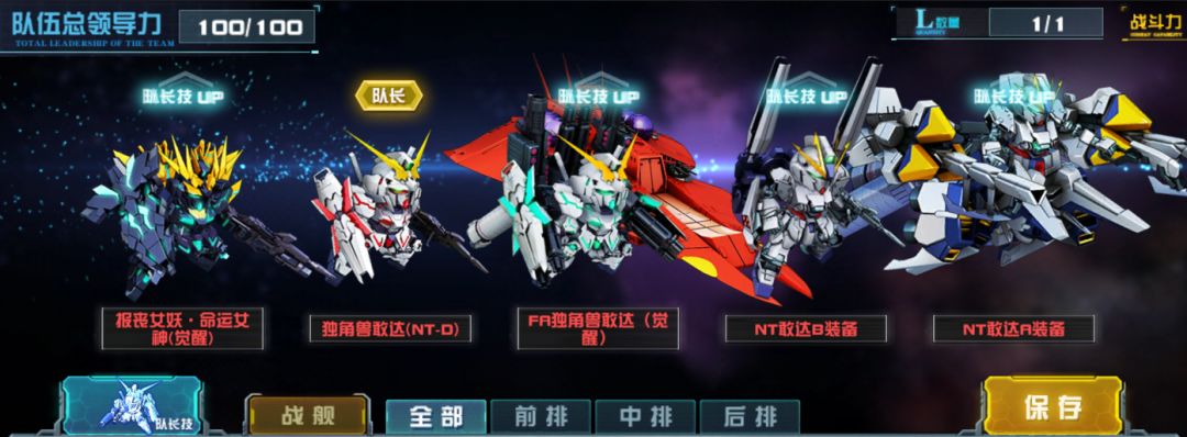 报丧女妖·命运女神(觉醒),独角兽敢达(NT-D),FA独角兽敢达(觉醒),NT敢达B装备,NT敢达A装备