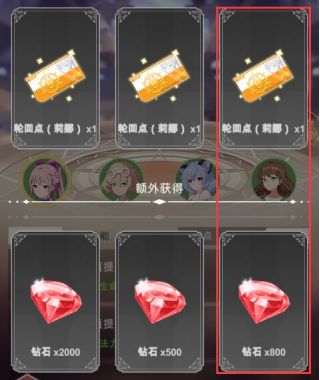 11. 升到60级开始轮回,我是60级就轮回的,懒得升到80级,60级点1点经验加成100%,升级直接少1倍,点3点就可以了然后升80,然后开启轮回少女收菜模式,下图是刚轮回的,60轮回混钻石,嗯,我只玩莉娜和安娜,理由就是他们好看,轮回一定要视频轮回哦,因为4个角色是通用的光卡进度,不然会被重置,神格碎片50个可以去商店兑换自己想要的神格装备,但是只有80级轮回才产出,宝藏之地也会产出。
