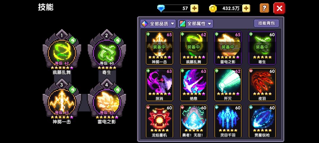 四星时:【雷电之影】持续期间,可以给你加60%的攻击频率,这是根据你自身原有攻速提升的,就意味着我们攻速保持在250时,250*60%=150,就可以给我们提供150的攻速,使得我们的攻击频率直接拉满达到4。