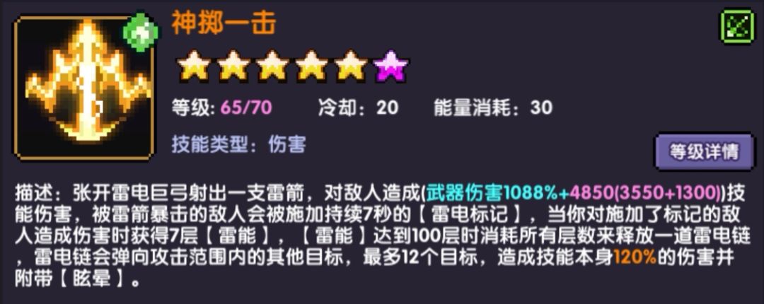 而在实际的刷图过程中,小怪的血量相对较低,很容易造成你给小怪标记了,然后把小怪秒了后,【神掷一击】的cd还没回复,使得没法触发雷电链,导致伤害会比较鸡肋,所以我们在对群时,冷却尽量越高越好,达到45%为最佳。