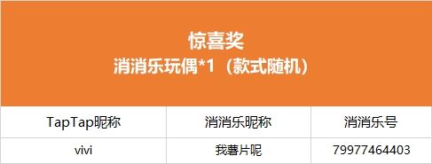 随机抽选1位小村民送出:消消乐玩偶*1(款式随机)