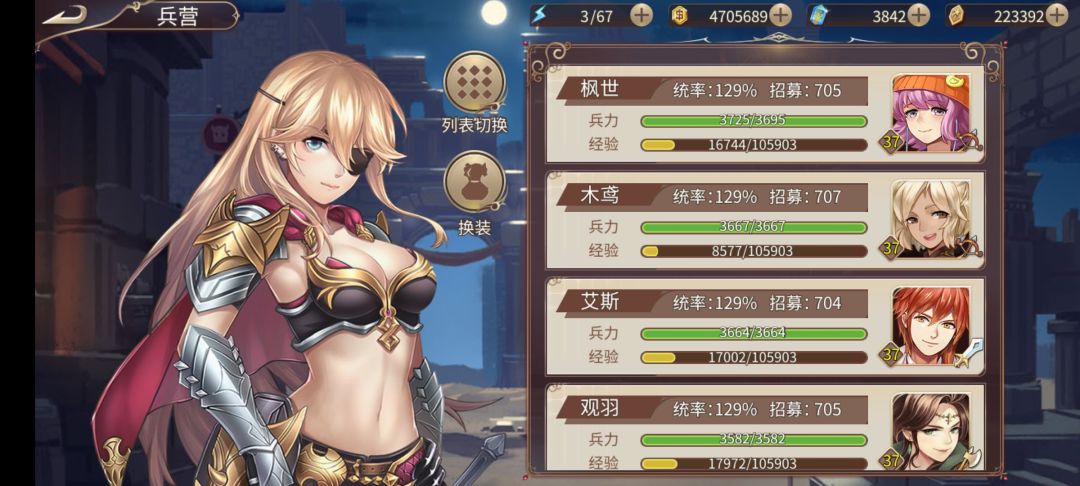 另外这些是萌新目前的练度,3星们也快四星,只是舍不得用礼物,遗迹慢慢来,不影响