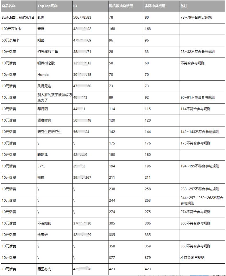 收到玩家与Tap查证反馈,该活动部分中奖楼层存在多账号/多IP情况,小玉兔与Tap平台方核验后进行汇总后更新,最终中奖结果以此为准。