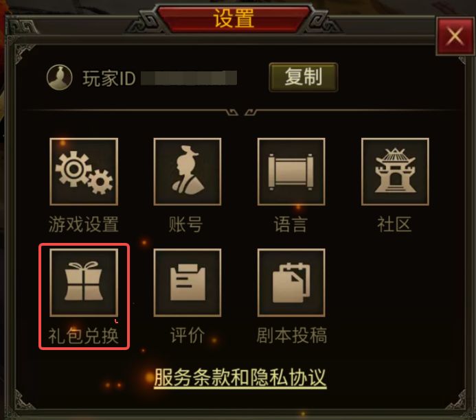3. 兑换方式:游戏标题画面——点击左下方设置按钮——填入礼包码