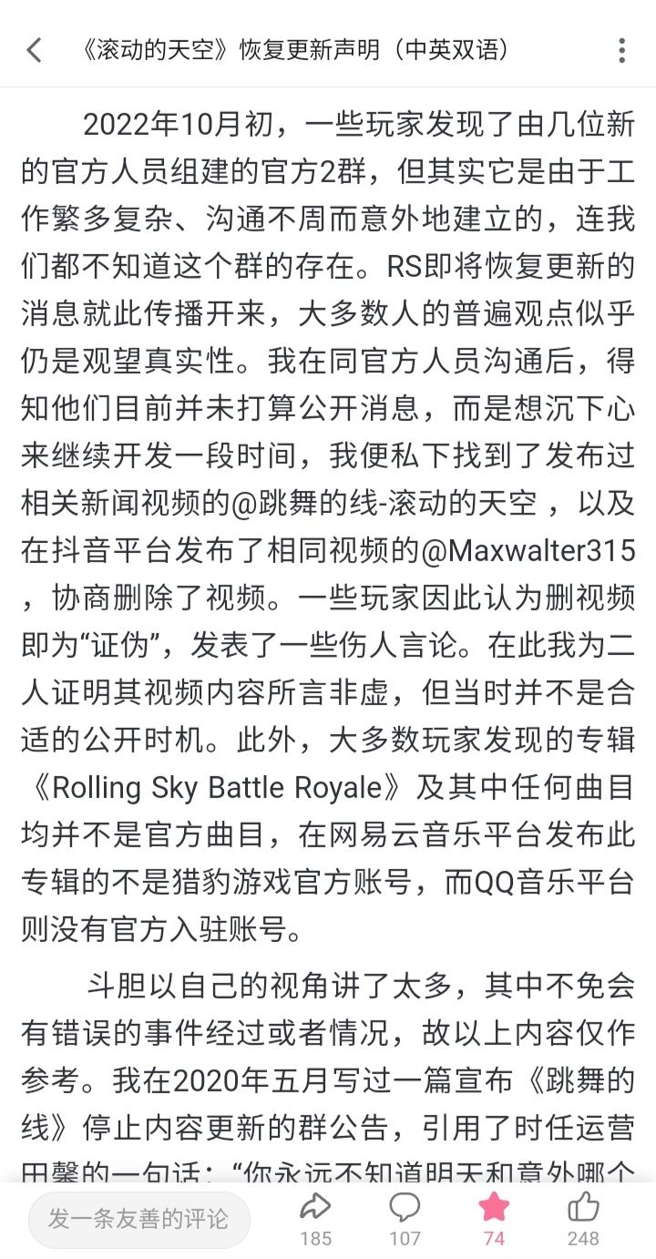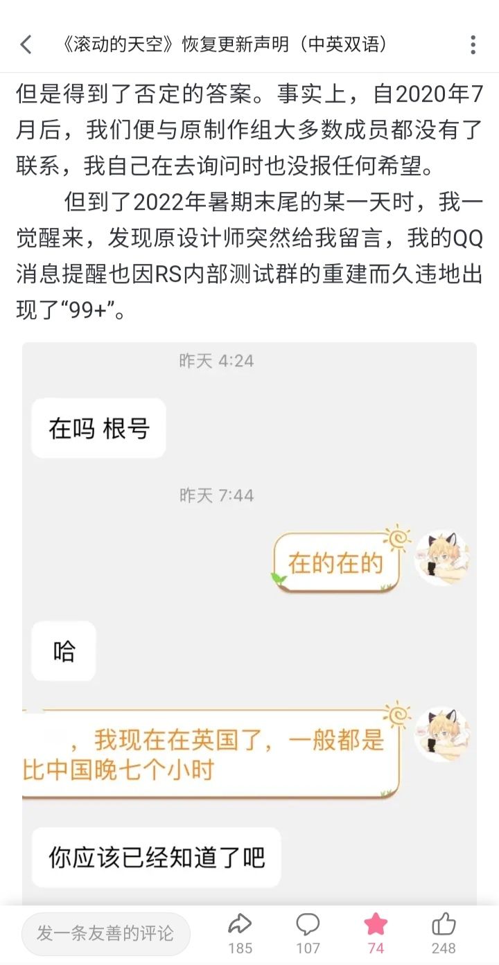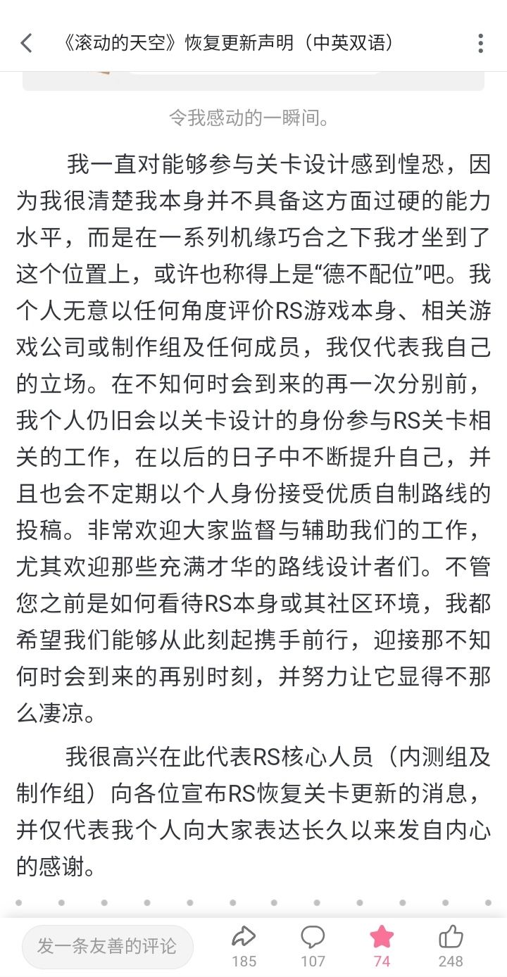【《滚动的天空》恢复更新声明(中英双语)】 https://b23.tv/yZNq0nY