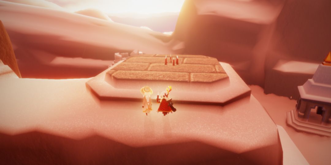 点燃白蜡烛后动画变成俯视,让光之子在光圈内坐下的提示更加明显,这倒是方便了很多来到神庙后不知道该干嘛的萌新。