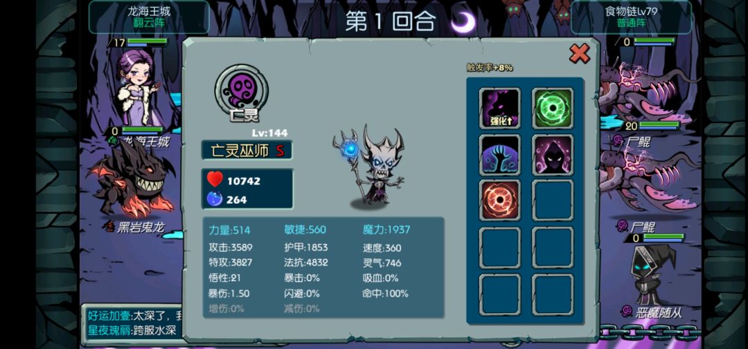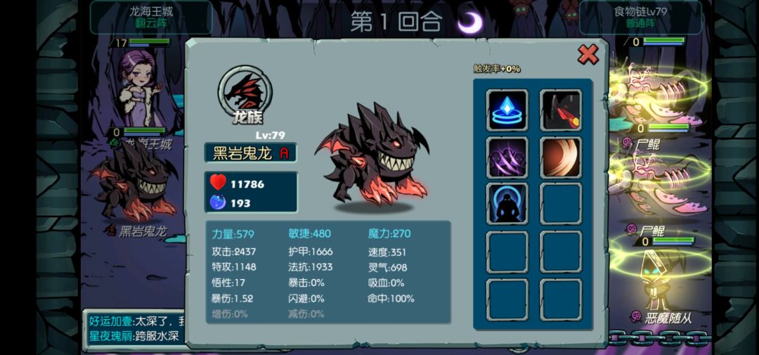 79,需要神罚来打鲲鲲,鬼龙自带神罚,弄一个下面这样的,不用太高等级,我的才79,速度比对面复活要低,