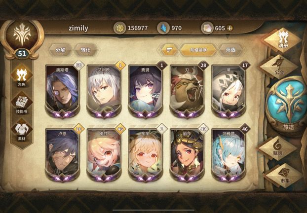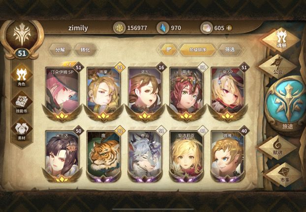 目前角色就是这些以及一些其他一般人都有的,雨果出两次是我没料到的(我就是随便用了个书签)。蒂卡的这个技能书我也买了不知道是不是买亏了,后期好用嘛?