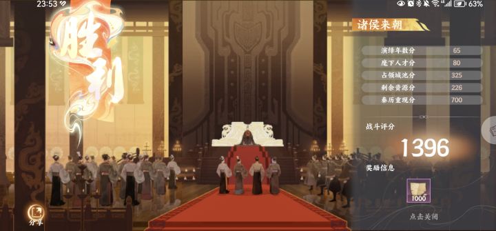 不过也会有一些意外,比如掉城池,比如脸黑负面事项太多会导致粮草或者金钱不够。试了几次感觉是比较容易过/得高分的方法。