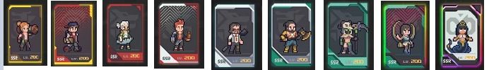 游戏里SSR的英雄人物目前共有43个,进化分为9个等级,分别是