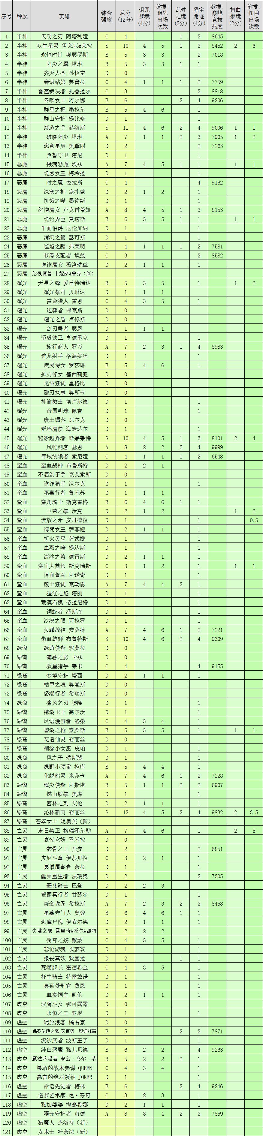 全英雄综合强度榜