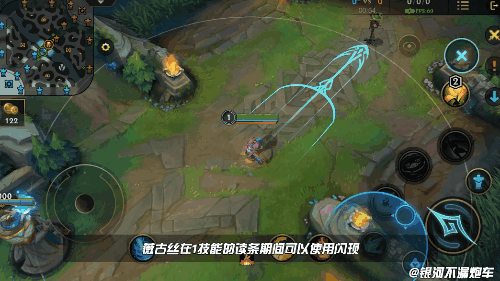 薇古丝 在Q(1)技能的读条期间,可以使用闪现实现Q闪(1闪),这样不仅可以延长Q(1)技能的影响范围,还可以改变Q(1)技能的出手位置,从而迷惑敌人的判断。