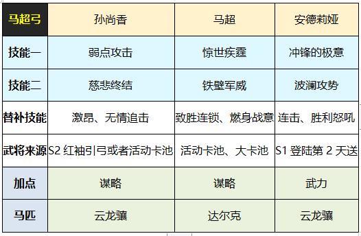 孙尚香带输出技能提供大量输出,安德本身不仅有伤害还有恢复,马超只能提供减伤不能给队友提供增伤效果,而且马超如果伤害高还会没有减伤效果,所以要给马超带没有伤害的辅助技能,既能稳定提供减伤又可以提高队伍输出伤害。