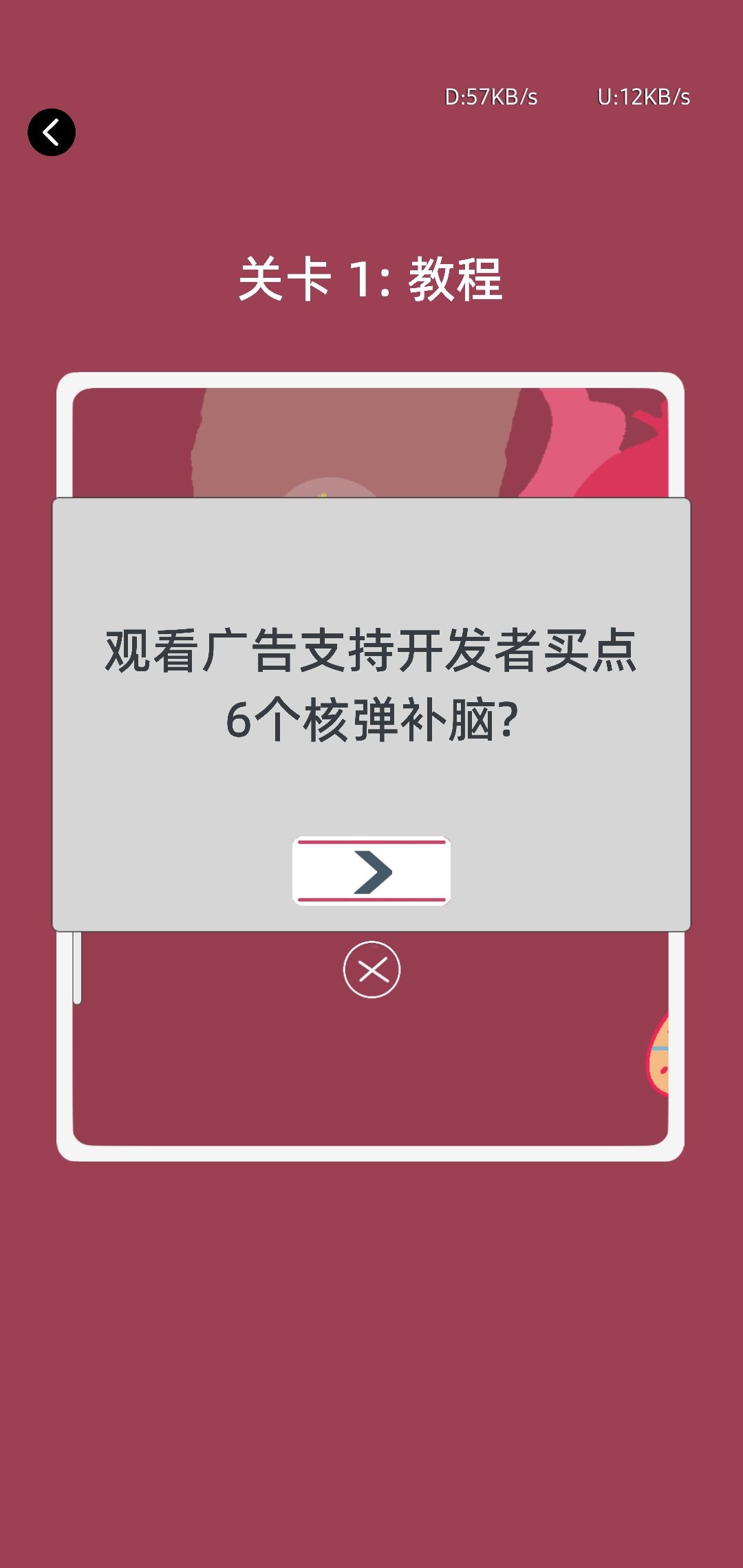 在开始游戏的时候会有个白色的弹窗,是广告哦,不喜欢的小伙伴点x就好了,但是还是支持一下啦~制作不易,如下: